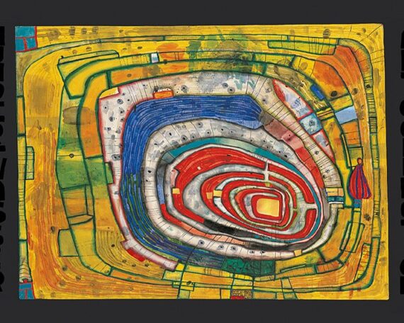 Friedensreich Hundertwasser fue un destacado pintor y arquitecto austriaco nacido en 1928. Sus trabajos arquitectónicos recuerdan a los del arquitecto catalán Antoni Gaudi por el uso de formas biomórficas. Desde joven se inspiró en el trabajo de Egon Schiele y Gustav Klimt. Su obra se destaca por las formas abstractas en las que introdujo diseños muy diversos, realizados con colores planos y un complicado sistema de líneas. Falleció el 19 de Febrero del 2000.